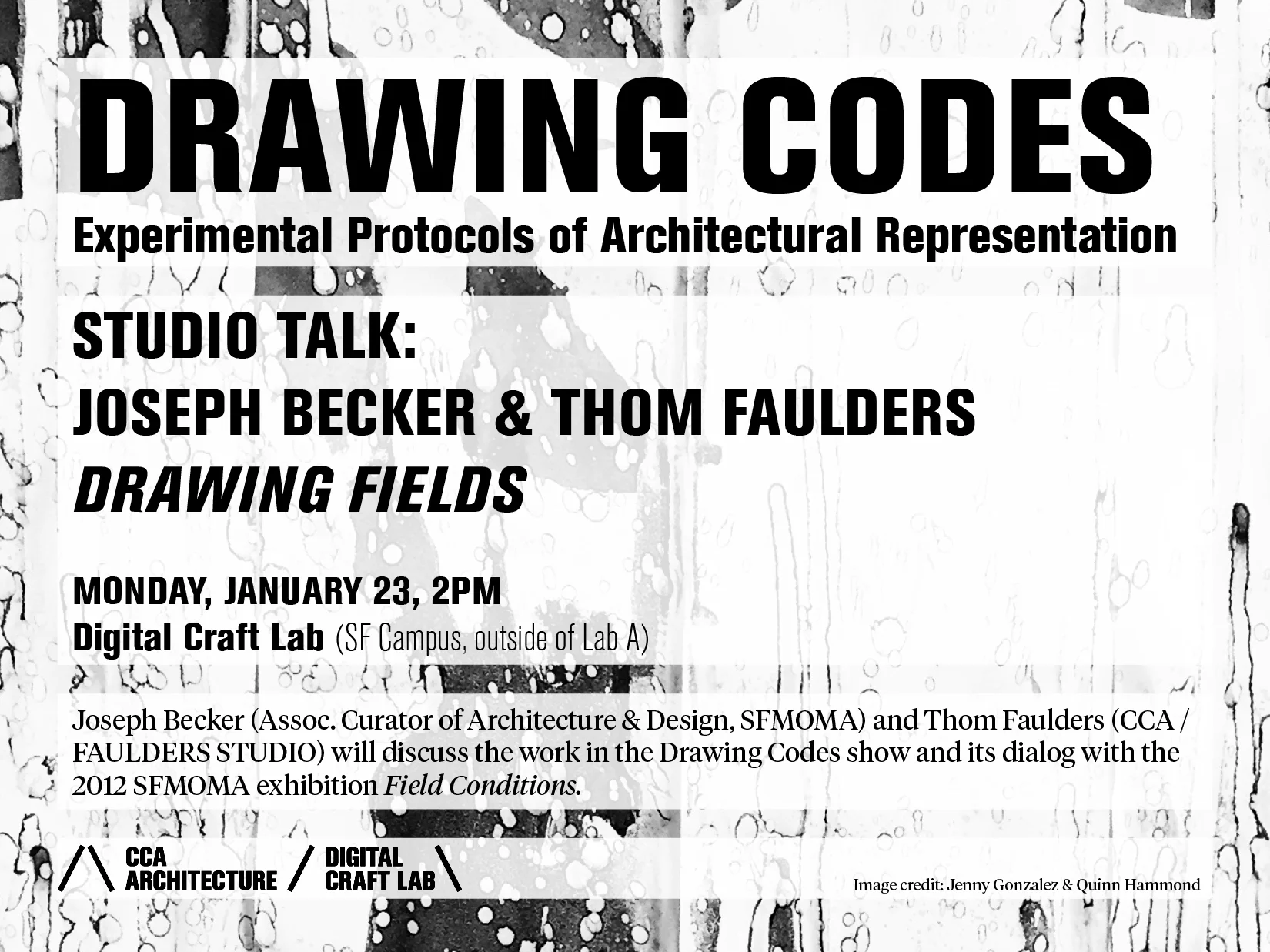 Organized in parallel with the DCL Drawing Codes exhibition, SFMOMA curator Joseph Becker and Thom Faulders of FAULDERS STUDIO will discuss the work in the exhibition as well as their past collaboration in the 2012 SFMOMA show Field Conditions.