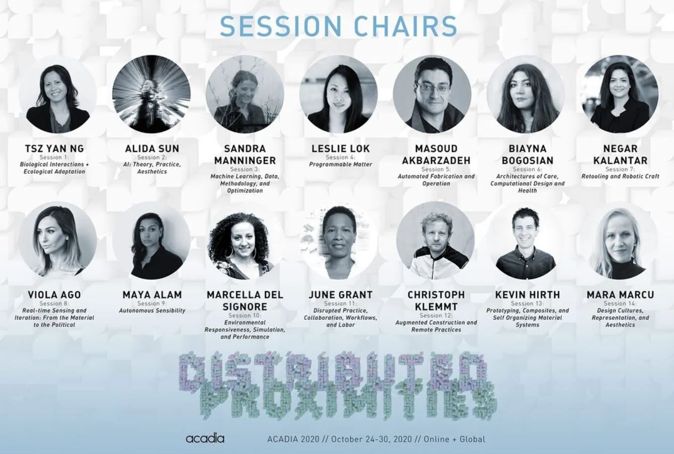 ACADIA 2020: Distributed Proximities conference features fourteen sessions of peer-reviewed research, organized thematically.