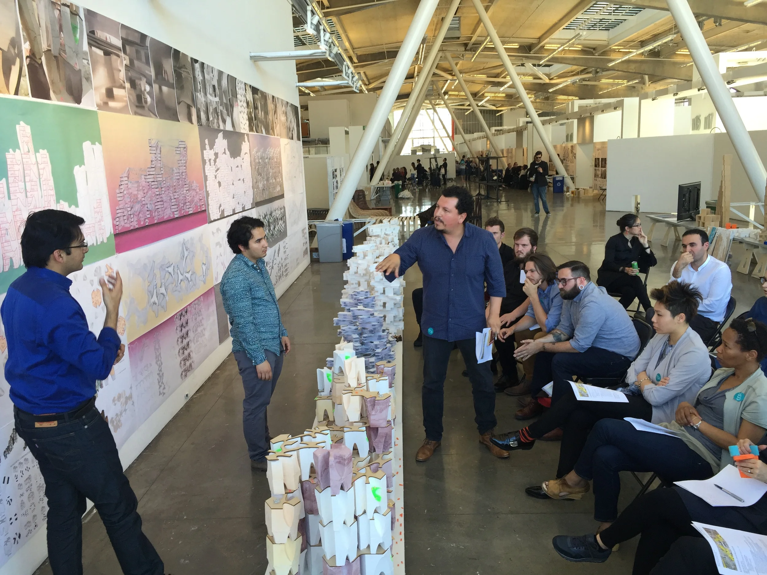 Market Street Prototyping Festival: In April 2015 - The CCA DCL and Jason Kelly Johnson worked with various partners to produce the MSPF in September 2015. CCA produced "a district anchor project" led by Adam Marcus and his students, including a series of urban exhibits and a demo of our Kuka robot on Market Street by Prof. Kudless.